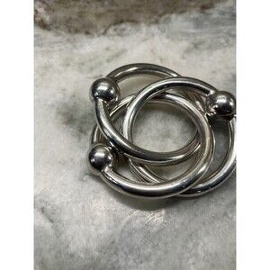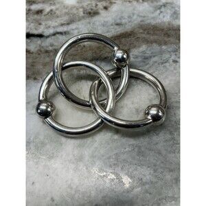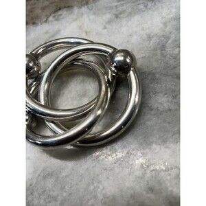 3 ring Silver Baby Rattle/teether Lunt-C303 Vintage Classic Rattler Shiny