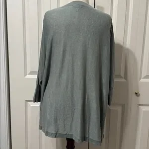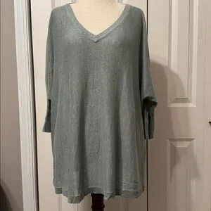 Cozy oversized sweater with a V-neck design. Perfect for layering. Organic Linen and washable.
