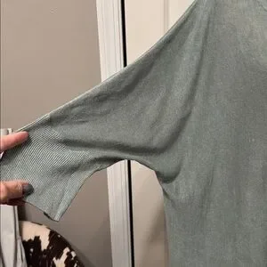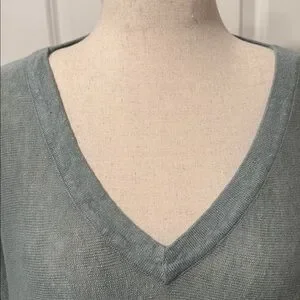 Garnet Hill Organic Linen V-Neck Oversized Sweater in light teal blue.