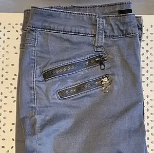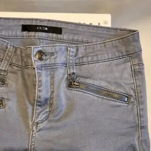 Description: Joes low rise skinny jeans size soft blue/gray stone color. Mini pockets with metal zipper accents on the front.