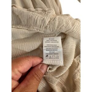 Womens Indigo Soul Beige Crochet Neck Ruffle Hem Gauze Top Blouse 100% Rayon