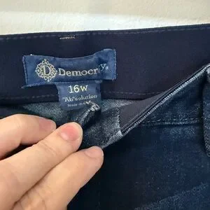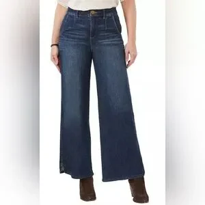 Chic dark blue denim by Democracy. Ideal for everyday style. A solution line, wide leg.