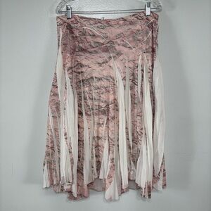 Studio Y Light Rose/Forest Green Funky Pleated Camo Midi Skirt Size L