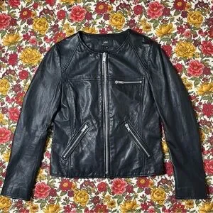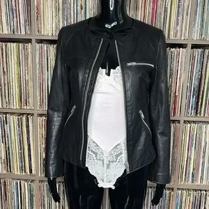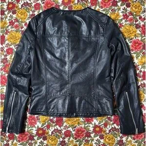 June Black Leather Biker Jacket w/ Silver Hardware Size XS