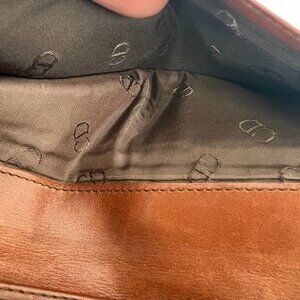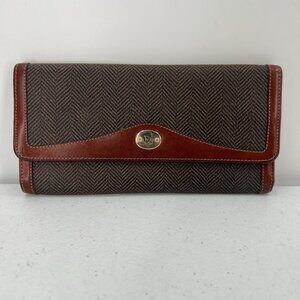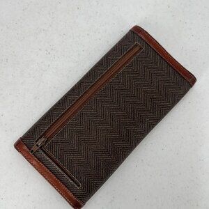Vtg Christian Dior Herringbone Wallet Clutch Brown Leather Made in Spain