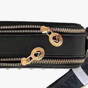Valentino Orlandi Studded Crossbody Camera Bag, Black w/Gold-Toned Hardware.