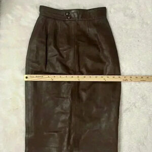 Vintage Brown Leather Midi Skirt 23” Waist