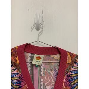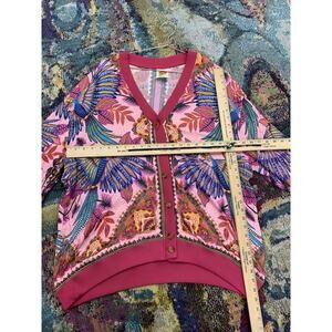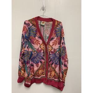 Farm Rio Pink Macaw Scarf Print Cardigan Button Front Rayon Women's XL