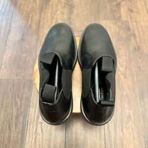 Step out in style with these sleek black leather boots. Perfect for any occasion, these boots offer both comfort and elegance. Overall condition is excellent. Shoe inserts are not included.