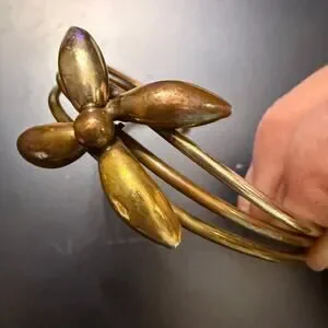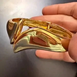 This is a gorgeous set of seven gold tone bracelets - five gold ball beaded stretch ones, a hinged one and a mixed metal cuff featuring a floral center. They are in strong preloved condition and could be worn all together or separately - any which way you wear them, they will dress up any outfit.