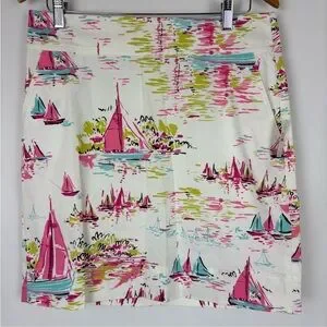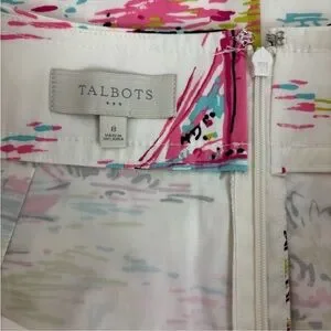 Talbots Outlet White with bright & colorful Sailboats Pencil Skirt Women’s Size 8 New with Tag. 98% cotton 2% spandex. Measurements laying flat waist 16.5 waist to hem 19.5. Very preppy. Back zipper & side pockets. Colors are white, pink, green black & blue.
