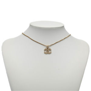 Pre-Loved Chanel Gold Plated CC Tweed Effect Pendant Necklace