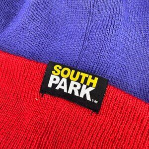 Fun and cozy South Park beanie featuring a bright red cuff, blue body, and matching red pom on top! Classic South Park logo tag on the front cuff. A great collectible piece for fans of the iconic show — perfect for everyday wear or as a novelty winter accessory.