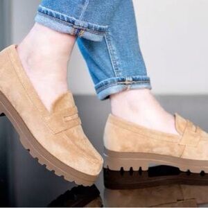 Hey Girl by Corkys Inspo Sand Faux Suede Platform Penny Loafer Size 8 or 9