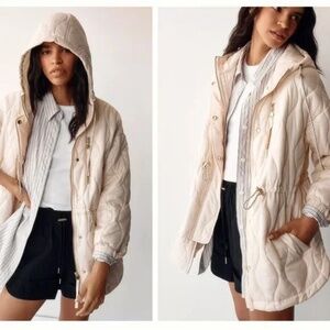 $280 Unworn Varley Caitlin Quilted Hooded Jacket in Whitecap Grey