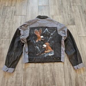 Reed St. James Vintage Denim Jacket Women M Custom Handmade Eagle Painted 80's