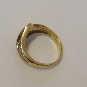 size 5.75 approximately. high quality gold tone / gold plated costume ring. Not solid gold it is gold plated. CZ stones