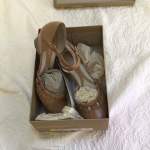 Chic tan leather heels with a stylish design. Comfortable and versatile for any occasion.