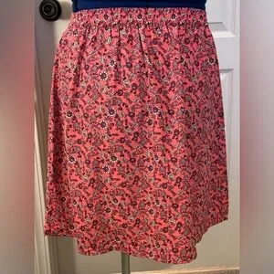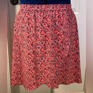 Vibrant coral skirt with delicate floral pattern. A-line design for a flattering fit.