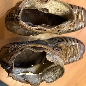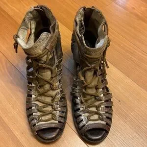 Stylish brown gladiator sandals with strappy design. It has a distressed look. Perfect for casual outings. Worn maybe about 3 times but could use some cleaning. It’s been in my closet for a while.