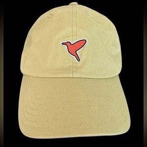 Stylish yellow cap featuring a red bird logo. Perfect for casual wear.