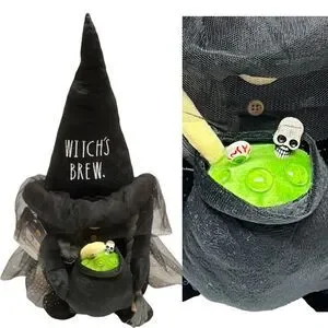 Rae Dunn WITCH'S BREW Plush Gnome HALLOWEEN Decor RARE Potion Skull Hat Trick or Treat Spooky Party Haunted House Ghost