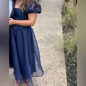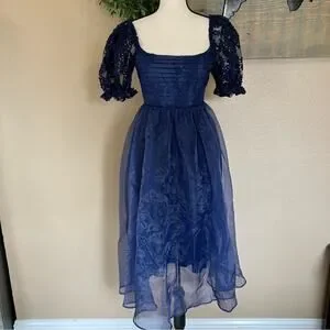 NWOT Lulus Significant Splendor Navy Organza Pleated Puff Sleeve Midi Dr…