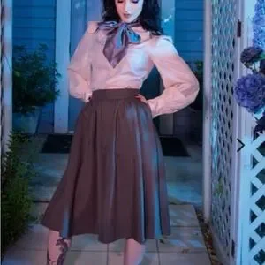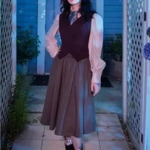 Elevate your wardrobe with this chic olive pinstripe midi skirt. Perfect for versatile styling, it adds a touch of elegance to any outfit. Such amazing quality material and detail went into the making of this skirt! It’s brand new with the tags, no flaws or tearing of any kind. Also a perfect Wednesday outfit!