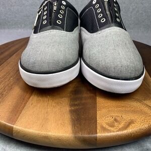 GBX Men 13 M Shoes Sneakers Skater Black No Lace Zip Up Low Top Taupe Old School