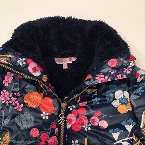 Boboli Spain Bright Floral Print Puffer Jacket Vibrant Colorful Fleece …