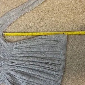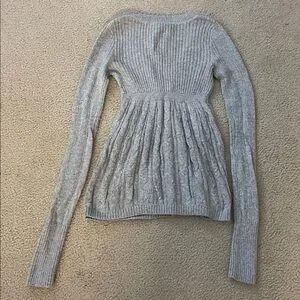 Elegant light gray knit sweater with ribbed cuffs. Ideal for cozy layering.