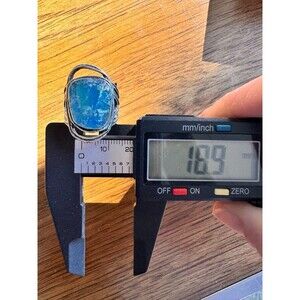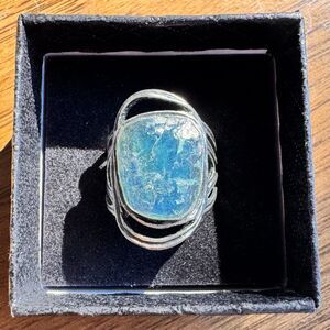 Vintage PZ Israel Roman Glass & Sterling Silver Ring, Size 8.8 by Paz Blue 925
