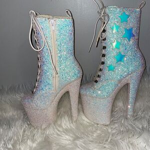 YRU MYA STAR WHITE GLITTER PLATFORM Stripper Dancewear BOOTS HEELS XTRA Size 5