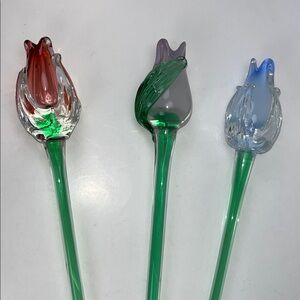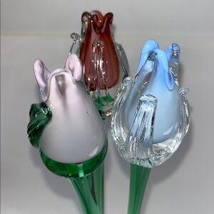 Mikasa Art Glass Hand Blown Murano Style ~ in Reddish/Blue/Lavender Tulip 🌷(3)