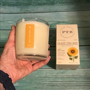 Indulge in the calming scent of sunflowers. Hand-poured soy candle in a cream shade. Perfect for relaxation. The candle box is actually plantable and will grow wildflowers if you moisten it and plant it.