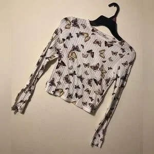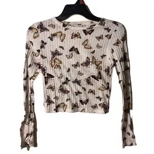 Fashion Nova Butterfly White Printed Long Sleeve Top Small
