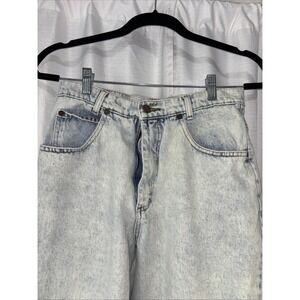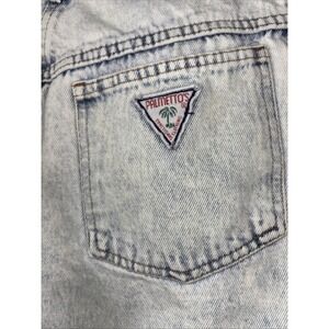 This product is a pair of vintage Palmetto women's jeans in size 11, featuring a light stone wash with stylistic detail at the ankle in the form of a zipper closure. The denim fabric has a high rise, tapered style, and is made of 100% cotton. These jeans have a 5-pocket design with a slash pocket, zip and button closure, and are machine washable. With a waist size of 26 inches and an inseam of 25.5 inches, these jeans are perfect for all seasons and offer a classic and timeless look for any wardrobe. These jeans have been pre-love with small loved flaws shown in pictures.