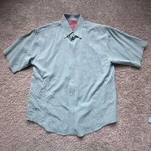 Bugatchi UOMO Button Up Men's SZ XL Short Sleeve Rayon Blend Pocket