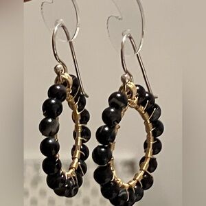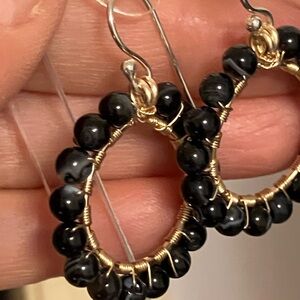 Hand Crafted Earrings Copper sterling silver Wrapped black stripe agate