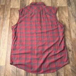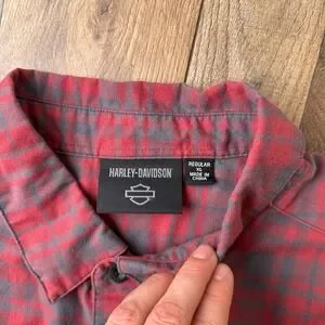 Keywords: Harley-Davidson, Flannel Shirt, Sleeveless Shirt, Red Plaid, Gray Plaid, Biker Shirt, Motorcycle Shirt, Button Down Shirt, XL, Extra Large, Casual Shirt, Men's Fashion, Plaid Shirt, Cotton Blend