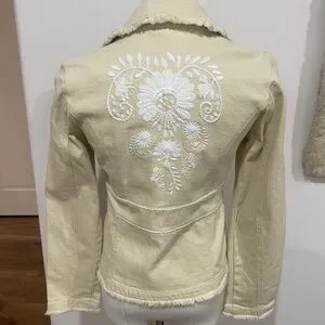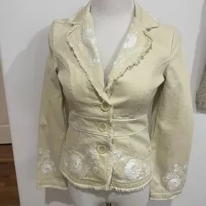 White House Black Market Size 6 Light Tan Embroidered Jacket