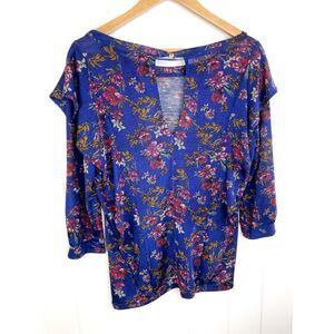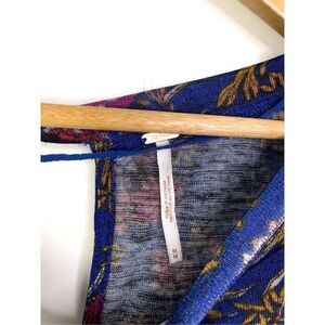 Free People Dock Street Top Blue Floral Ruffle Long Sleeve Size M