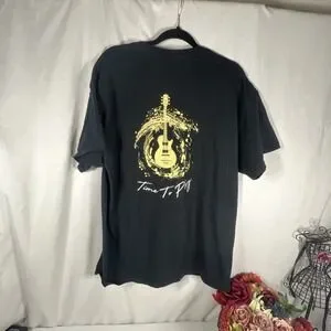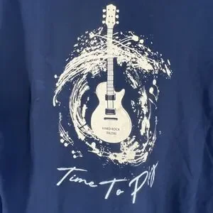 The product is a black XL T-shirt from the Hard Rock Hotel Casino in Biloxi, featuring a guitar design and the phrase "Time To Play." Made of 100% cotton knit fabric, this short sleeve shirt has a round neck and is machine washable. The graphic tee style is accented with the Hard Rock logo, and it falls under the rock theme. Perfect for all seasons, this regular fit T-shirt is a stylish addition for any man's wardrobe.
