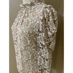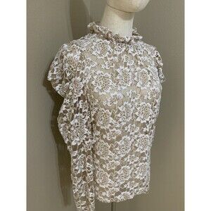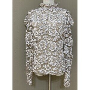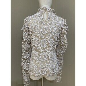 Dolan Anthropologie Lace Mock Neck Floral Ivory Blouse Long Sleeves MP