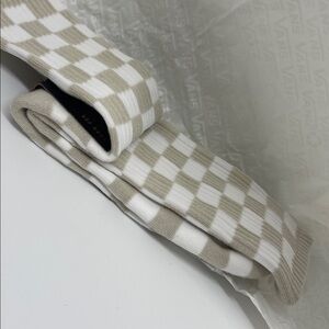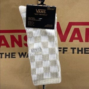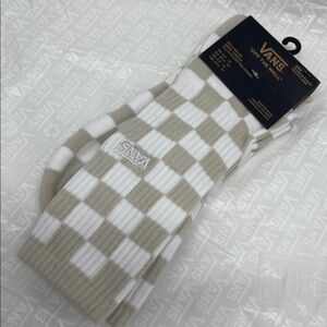 Classic Vans socks with a white and tan checkered pattern. Perfect for everyday wear.