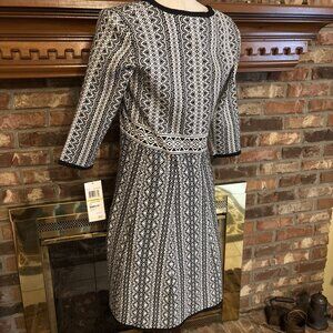 Nina Leonard Dress Womens Size M Black White Geometric Fit & Flare Knit NWT