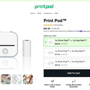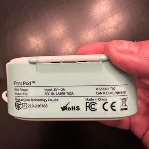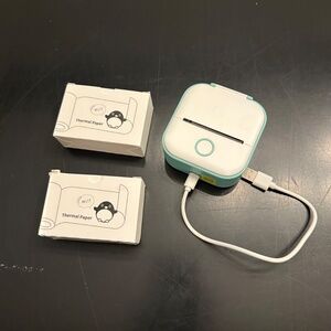 NWOT-Print Pod in teal blue, charging cord, and 6 rolls of print paper. Never been used. Download the app to create your customize labels from your phone. You can choose different fonts, printing pictures & more! Paper is self adhesive. Meet the Print Pod ™,the world's most convenient This little device allows vou to print anvwhere,