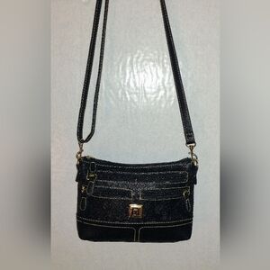 Leather black crossbody with intricate detailing. Ideal for daily use. Stylish and functional with many pockets to organize everything so you will know where all your items are. Excellent condition with adjustable strap.
