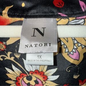 Natori Women's Sleep Gown Nightgown-Black Red Satin-3/4 Sleeve-V Neck-Size 1X