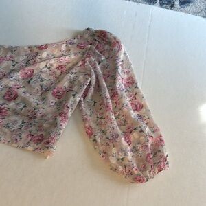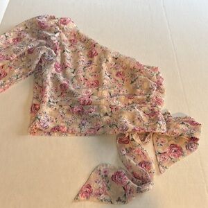 NWT Express Floral One Shoulder Puff Sleeve Crop Top Blush Primrose Size S